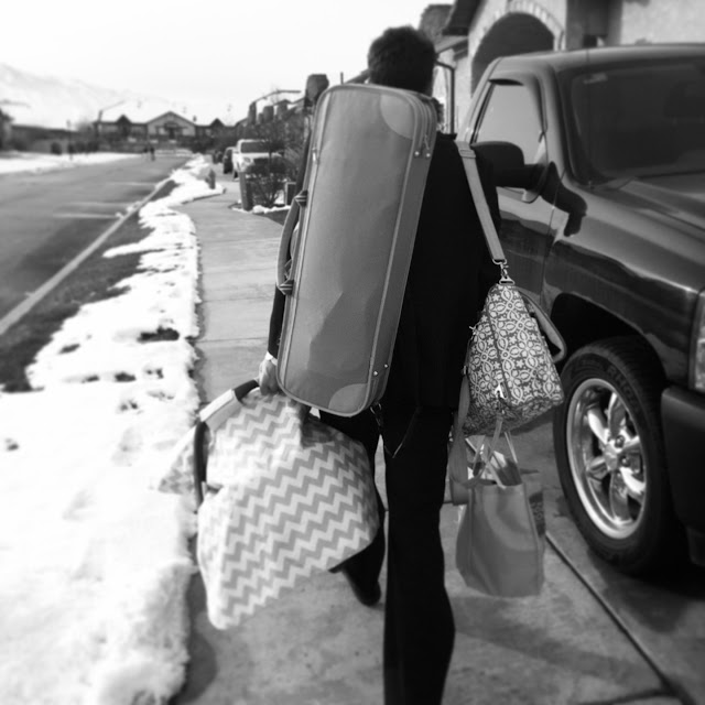 ReplyDeleteHahaha! I love this picture! Brings me back to USU when you would haul huge bags and your violin...... now Tyler gets to haul them :) Such a good hubby!!